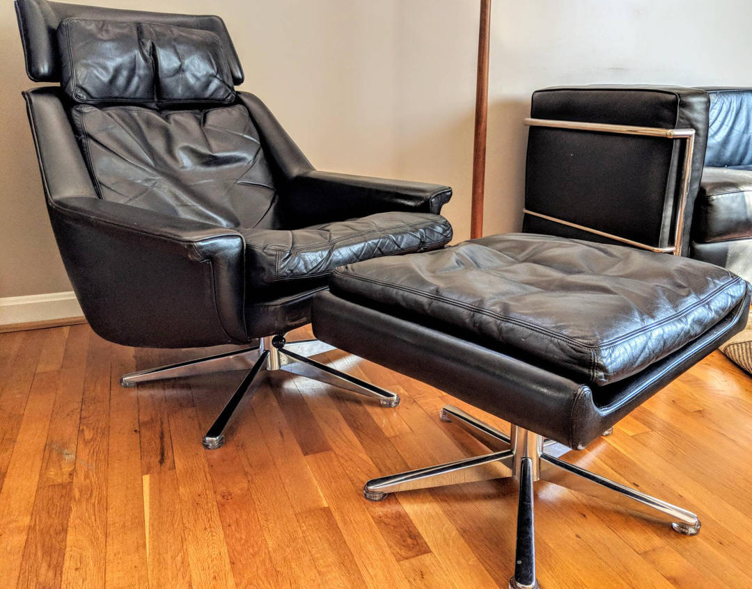 Vintage Black Vinyl Swivel Lounge Chair with Ottoman - EPOCH from i1.wp.com Get cozy in your living room space with an arm chair or chaise lounge chair. 24w 20d 14h ottoman with aluminum base. Style lounge chair & ottoman. Pair swivel lounge chairs and rarely seen ottoman designed by edward wormley for dunbar. The lounge chair, which was designed by charles and ray eames in the 1950s, is now regarded as one of the most important furniture designs of the twentieth century. The chair's distinctive, high back makes it easy to lounge and rest your head, while the aluminum swivel base enhances easy movement. Retro barcelona style lounge chair and ottoman 100% pu leather white footstool. Classic lounge chair with ottoman, real leather swivel sofa furniture for living room hotel, home office desk.